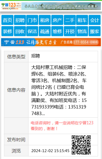 | 防骗提醒: | 宁晋123(www.nj123.cc)提醒您:手工活、网络兼职、刷单,都是骗子!凡以各种名义收取费用的都是骗子!找工作是往兜里挣钱,让你往外掏钱的都是骗子!异地招聘请提高警惕,谨防诈骗! |