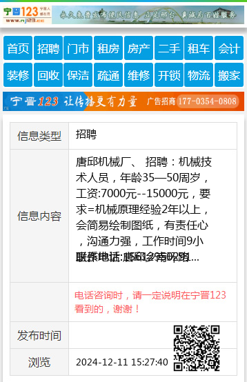 唐邱机械厂、 招聘:机械技术人员,年龄35—50周岁,工资:7000元--15000元,要求=机械原理经验2年以上,会简易绘制图纸,有责任心,沟通力强,工作时间9小时。