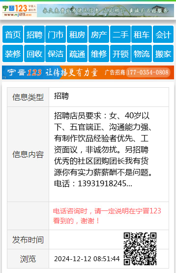 招聘店员要求:女、40岁以下、五官端正、沟通能力强、有制作饮品经验者优先、工资面议,非诚勿扰。另招聘优秀的社区团购团长我有货源你有实力薪薪酬不是问题。电话:13931918245 【电话咨询时,请一定说明在宁晋123看到的,谢谢!】 |