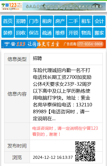 车险代理诚招内勤一名不打电话找长期工资2700加奖励公休4天要求女23岁-32周岁以下高中及以上学历熟练使用电脑打字快。地址:紫金名苑华泰保险电话:13211089989【电话咨询时,请一定说明在 【电话咨询时,请一定说明在宁晋123看到的,谢谢!】 |