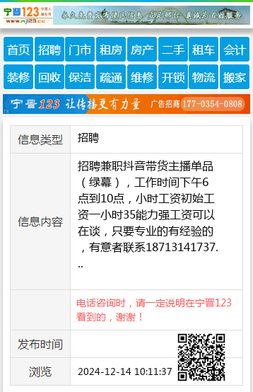 | 防骗提醒: | 宁晋123(www.nj123.cc)提醒您:手工活、网络兼职、刷单,都是骗子!凡以各种名义收取费用的都是骗子!找工作是往兜里挣钱,让你往外掏钱的都是骗子!异地招聘请提高警惕,谨防诈骗! |