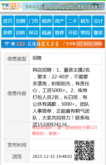 电话咨询时,请一定说明在宁晋123看到的,谢谢!