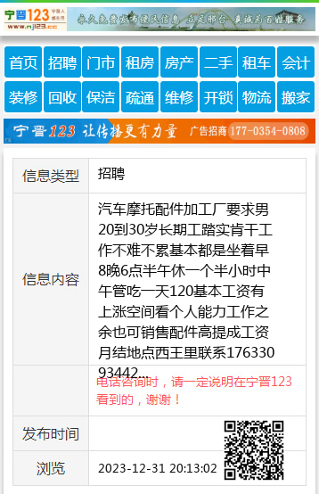 | 防骗提醒: | 宁晋123(www.nj123.cc)提醒您:手工活、网络兼职、刷单,都是骗子!凡以各种名义收取费用的都是骗子!找工作是往兜里挣钱,让你往外掏钱的都是骗子!异地招聘请提高警惕,谨防诈骗! |