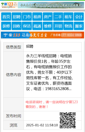 电话咨询时,请一定说明在宁晋123看到的,谢谢!
