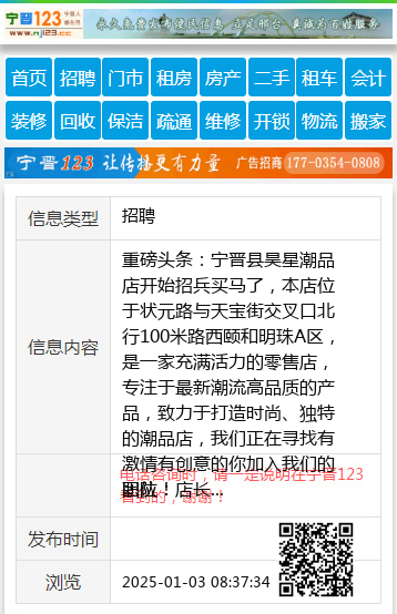 重磅头条:宁晋县昊星潮品店开始招兵买马了,本店位于状元路与天宝街交叉口北行100米路西颐和明珠A区,是一家充满活力的零售店,专注于最新潮流高品质的产品,致力于打造时尚、独特的潮品店,我们正在寻找有激情有创意的你加入我们的团队!