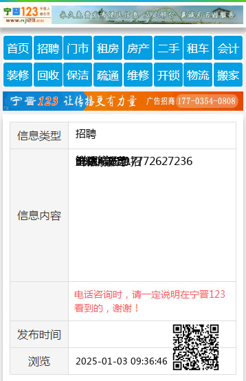 免责声明:本栏目信息由网友自行发布,宁晋123不承担任何责任!提高警惕,谨防诈骗!做推广、做信息置顶!请加宁晋123客服微信:ningjin009