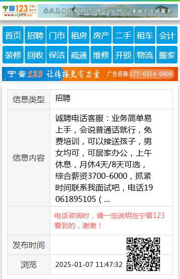 诚聘电话客服:业务简单易上手,会说普通话就行,免费培训,可以接送孩子,男女均可,可居家办公,上午休息,月休4天/8天可选,综合薪资3700-6000,抓紧时间联系我面试吧,电话19061895105( 【电话咨询时,请一定说明在宁晋123看到的,谢谢!】 |