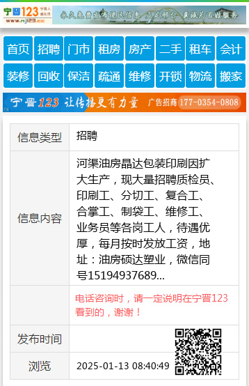 电话咨询时,请一定说明在宁晋123看到的,谢谢!