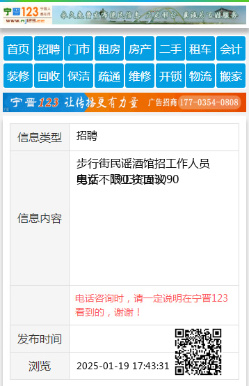 步行街民谣酒馆招工作人员男女不限工资面议 电话:19031193090
