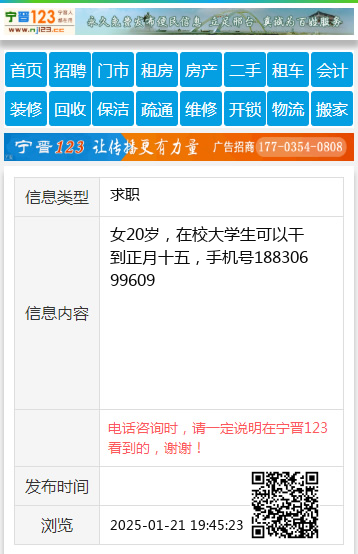 女20岁,在校大学生可以干到正月十五,手机号18830699609