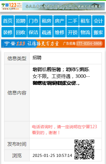 电话咨询时,请一定说明在宁晋123看到的,谢谢!