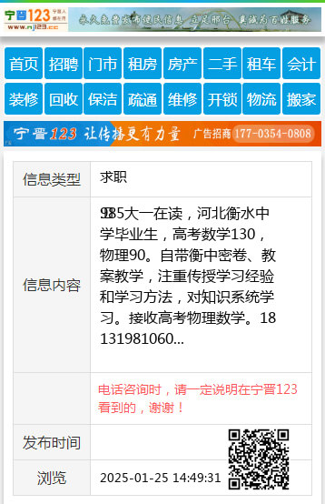 985大一在读,河北衡水中学毕业生,高考数学130,物理90。自带衡中密卷、教案教学,注重传授学习经验和学习方法,对知识系统学习。接收高考物理数学。18131981060 【电话咨询时,请一定说明在宁晋123看到的,谢谢!】 |