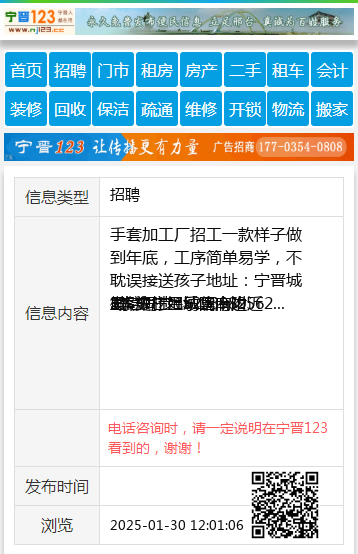 | 防骗提醒: | 宁晋123(www.nj123.cc)提醒您:手工活、网络兼职、刷单,都是骗子!凡以各种名义收取费用的都是骗子!找工作是往兜里挣钱,让你往外掏钱的都是骗子!异地招聘请提高警惕,谨防诈骗! |