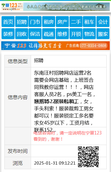 东南汪村招聘网店运营2名需要会网店基础,上班签合同我教你运营!!!,网店客服人员2名,ps美工一名,联系15227318181。
