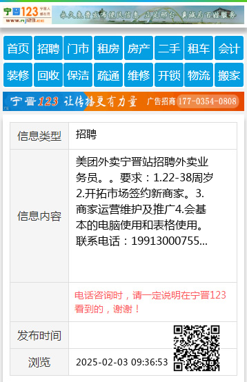 美团外卖宁晋站招聘外卖业务员。。要求:1.22-38周岁2.开拓市场签约新商家。3.商家运营维护及推广4.会基本的电脑使用和表格使用。联系电话:19913000755 【电话咨询时,请一定说明在宁晋123看到的,谢谢!】 |