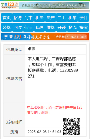 免责声明:本栏目信息由网友自行发布,宁晋123不承担任何责任!提高警惕,谨防诈骗!做推广、做信息置顶!请加宁晋123客服微信:ningjin009
