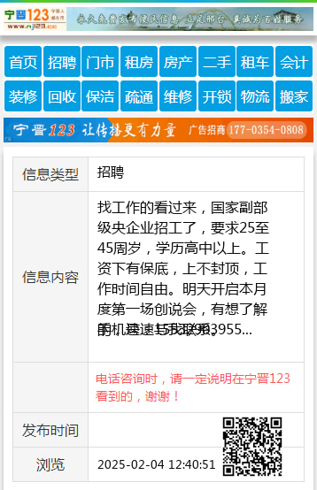 找工作的看过来,国家副部级央企业招工了,要求25至45周岁,学历高中以上。工资下有保底,上不封顶,工作时间自由。明天开启本月度第一场创说会,有想了解的,速速与我联系。