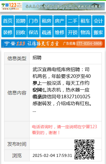 | 防骗提醒: | 宁晋123(www.nj123.cc)提醒您:手工活、网络兼职、刷单,都是骗子!凡以各种名义收取费用的都是骗子!找工作是往兜里挣钱,让你往外掏钱的都是骗子!异地招聘请提高警惕,谨防诈骗! |