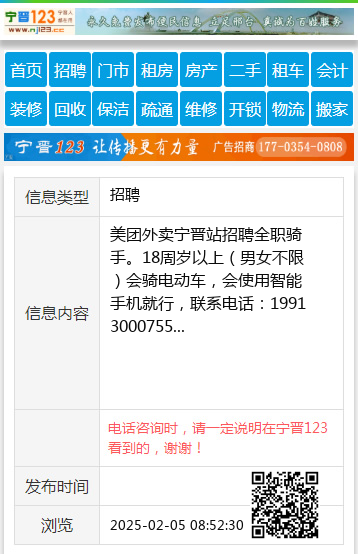 | 防骗提醒: | 宁晋123(www.nj123.cc)提醒您:手工活、网络兼职、刷单,都是骗子!凡以各种名义收取费用的都是骗子!找工作是往兜里挣钱,让你往外掏钱的都是骗子!异地招聘请提高警惕,谨防诈骗! |