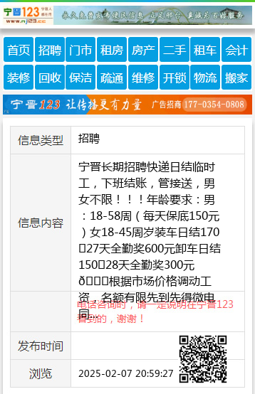 宁晋长期招聘快递日结临时工,下班结账,管接送,男女不限!!!年龄要求:男:18-58周(每天保底150元)女18-45周岁装车日结170➕27天全勤奖600元卸车日结150➕28天全勤奖300元💟根据市场价格调动工资,名额有限先到先得微电同号:16768942720曹 【电话咨询时,请一定说明在宁晋123看到的,谢谢!】 |