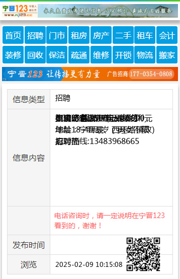 有兴趣的小伙伴,可以私信我 【电话咨询时,请一定说明在宁晋123看到的,谢谢!】 |