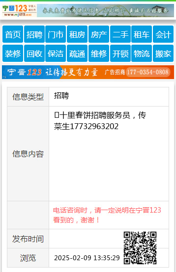 免责声明:本栏目信息由网友自行发布,宁晋123不承担任何责任!提高警惕,谨防诈骗!做推广、做信息置顶!请加宁晋123客服微信:ningjin009