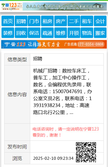 免责声明:本栏目信息由网友自行发布,宁晋123不承担任何责任!提高警惕,谨防诈骗!做推广、做信息置顶!请加宁晋123客服微信:ningjin009