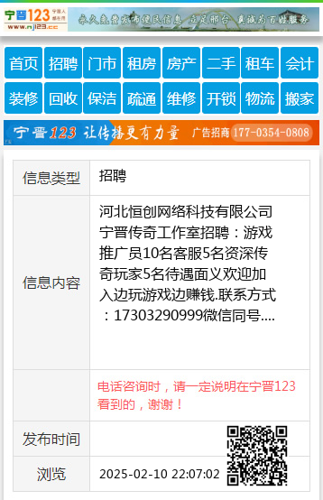 河北恒创网络科技有限公司宁晋传奇工作室招聘:游戏推广员10名客服5名资深传奇玩家5名待遇面义欢迎加入边玩游戏边赚钱.联系方式:17303290999微信同号. 【电话咨询时,请一定说明在宁晋123看到的,谢谢!】 |