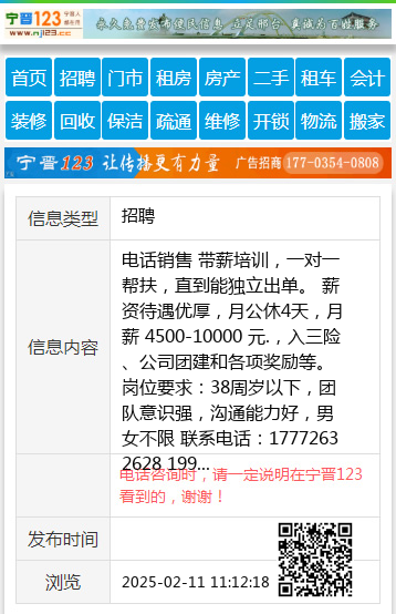 电话销售 带薪培训,一对一帮扶,直到能独立出单。 薪资待遇优厚,月公休4天,月薪 4500-10000 元.,入三险、公司团建和各项奖励等。 岗位要求:38周岁以下,团队意识强,沟通能力好,男女不限 联系电话:17772632628 19943529661 【电话咨询时,请一定说明在宁晋123看到的,谢谢!】 |