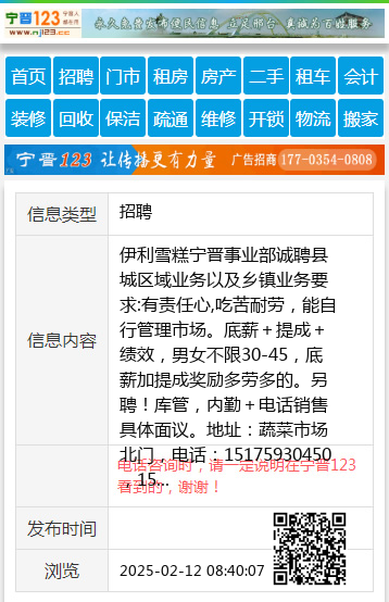 伊利雪糕宁晋事业部诚聘县城区域业务以及乡镇业务要求:有责任心,吃苦耐劳,能自行管理市场。底薪+提成+绩效,男女不限30-45,底薪加提成奖励多劳多的。另聘!库管,内勤+电话销售具体面议。地址:蔬菜市场北门,电话:15175930450,15227739456 【电话咨询时,请一定说明在宁晋123看到的,谢谢!】 |