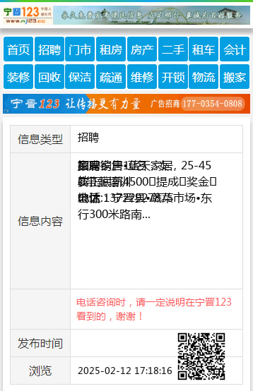 | 防骗提醒: | 宁晋123(www.nj123.cc)提醒您:手工活、网络兼职、刷单,都是骗子!凡以各种名义收取费用的都是骗子!找工作是往兜里挣钱,让你往外掏钱的都是骗子!异地招聘请提高警惕,谨防诈骗! |