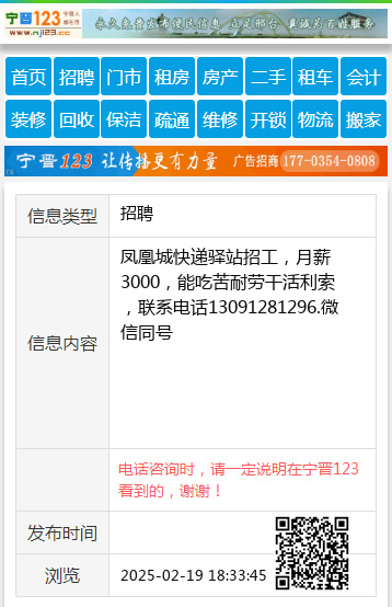 凤凰城快递驿站招工,月薪3000,能吃苦耐劳干活利索,联系电话13091281296.微信同号