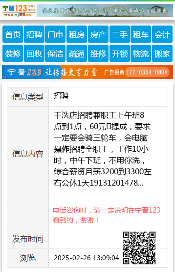 干洗店招聘兼职工上午班8点到1点,60元➕提成,要求一定要会骑三轮车,会电脑操作