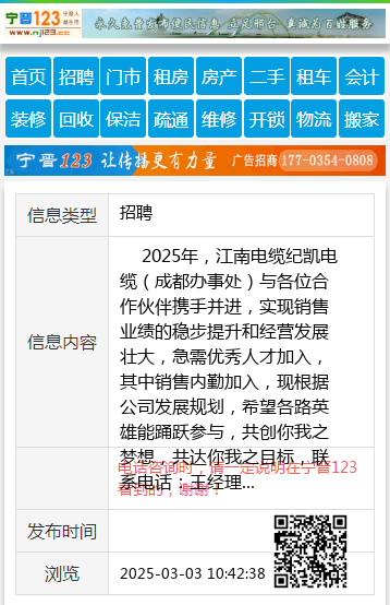 2025年,江南电缆纪凯电缆(成都办事处)与各位合作伙伴携手并进,实现销售业绩的稳步提升和经营发展壮大,急需优秀人才加入,其中销售内勤加入,现根据公司发展规划,希望各路英雄能踊跃参与,共创你我之梦想,共达你我之目标,联系电话:王经理1390808718118808053798微信同号。 【电话咨询时,请一定说明在宁晋123看到的,谢谢!】 |