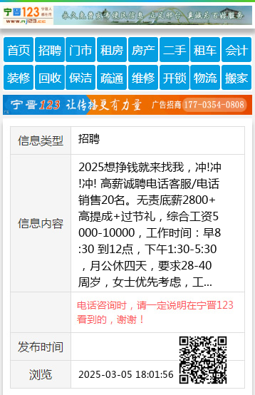 电话咨询时,请一定说明在宁晋123看到的,谢谢! |