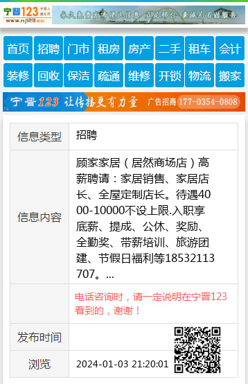 顾家家居(居然商场店)高薪聘请:家居销售、家居店长、全屋定制店长。待遇4000-10000不设上限.入职享底薪、提成、公休、奖励、全勤奖、带薪培训、旅游团建、节假日福利等18532113707。 【电话咨询时,请一定说明在宁晋123看到的,谢谢!】 |