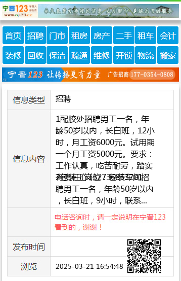 电话咨询时,请一定说明在宁晋123看到的,谢谢! |