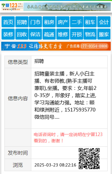 招聘童装主播,新人小白主播、有老师教,(熟手主播可兼职),坐播。要求:女,年龄20-35岁,形象好,踏实上进,学习沟通能力强。地址:颐和绿洲附近,15175935770微信同号. 【电话咨询时,请一定说明在宁晋123看到的,谢谢!】 |