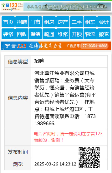 【电话咨询时,请一定说明在宁晋123看到的,谢谢!】 |
