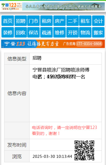 宁晋县喷涂厂招聘喷涂师傅一名,4米2货车司机一名 电话:15930498777