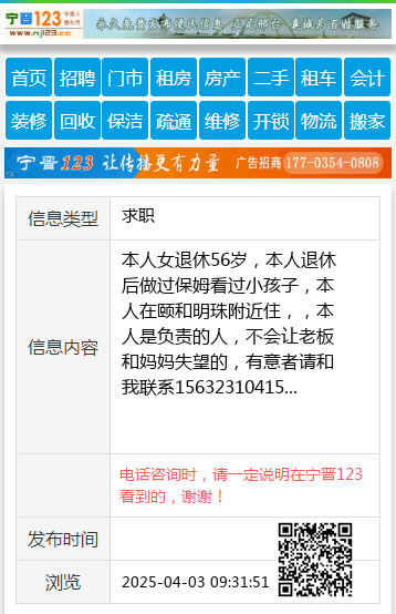 本人女退休56岁,本人退休后做过保姆看过小孩子,本人在颐和明珠附近住,,本人是负责的人,不会让老板和妈妈失望的,有意者请和我联系15632310415