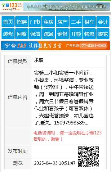 实验三小和实验一小附近,小餐桌,环境整洁,专业教师(资格证),中午管接送,周一到周五每晚辅导作业,周六日节假日寒暑假辅导作业和看孩子(可看双休),兴趣班管接送,幼儿园也了接送。15097998589 【电话咨询时,请一定说明在宁晋123看到的,谢谢!】 |