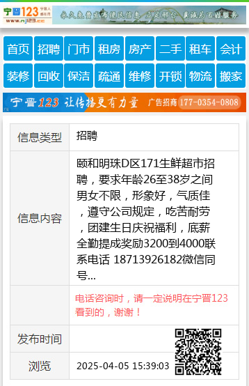 颐和明珠D区171生鲜超市招聘,要求年龄26至38岁之间男女不限,形象好,气质佳,遵守公司规定,吃苦耐劳,团建生日庆祝福利,底薪全勤提成奖励3200到4000