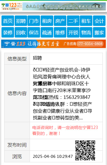 🔥轻资产创业机会-诗伊珀风湿骨痛调理中心合伙人火爆招募中 财富坐标:颐和明珠D区十字路口南行20米米莱奢享沙龙二楼 ☎️财富热线:15632938477(微信同号) 👉适合人群:✓想轻资产创业者✓健康行业从业者✓寻找副业者✓想转型的美业人✓看好大健康产业的投资者💡亚健康人群超6亿!万亿蓝海市场等你来分!