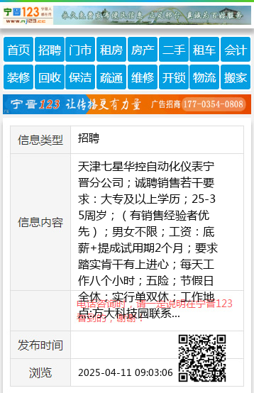 天津七星华控自动化仪表宁晋分公司;诚聘销售若干要求:大专及以上学历;25-35周岁;(有销售经验者优先);男女不限;工资:底薪+提成试用期2个月;要求踏实肯干有上进心;每天工作八个小时;五险;节假日全休;实行单双休;工作地点:方大科技园联系电话:13752055332刘经理;17867425860罗经理; 【电话咨询时,请一定说明在宁晋123看到的,谢谢!】 |