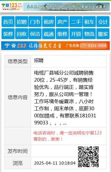 电话咨询时,请一定说明在宁晋123看到的,谢谢!