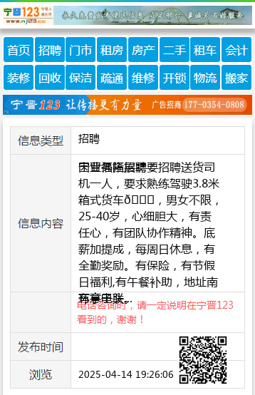 免责声明:本栏目信息由网友自行发布,宁晋123不承担任何责任!提高警惕,谨防诈骗!做推广、做信息置顶!请加宁晋123客服微信:ningjin009