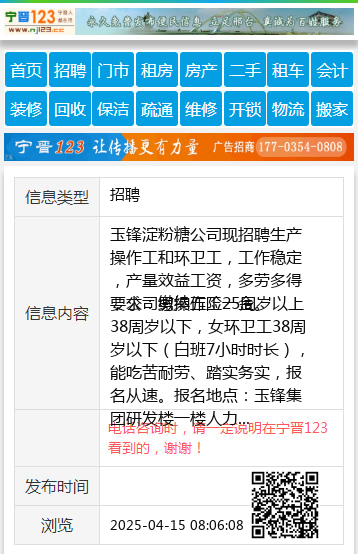 玉锋淀粉糖公司现招聘生产操作工和环卫工,工作稳定,产量效益工资,多劳多得,公司缴纳五险一金。