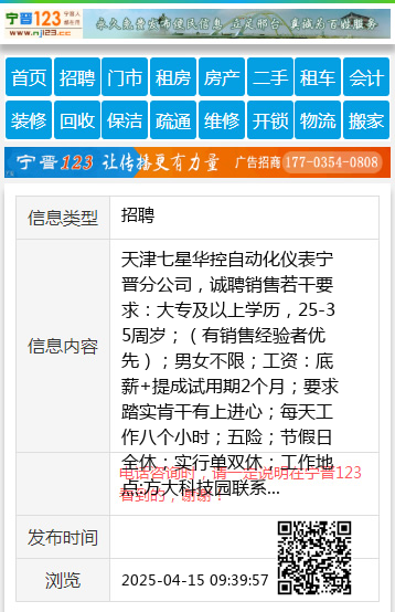 天津七星华控自动化仪表宁晋分公司,诚聘销售若干要求:大专及以上学历,25-35周岁;(有销售经验者优先);男女不限;工资:底薪+提成试用期2个月;要求踏实肯干有上进心;每天工作八个小时;五险;节假日全休;实行单双休;工作地点:方大科技园联系电话:13752055332刘经理;17867425860罗经理 【电话咨询时,请一定说明在宁晋123看到的,谢谢!】 |
