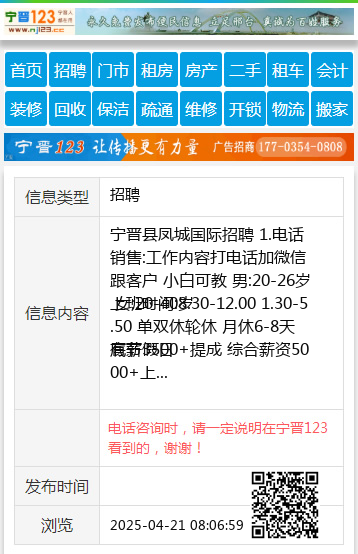 宁晋县凤城国际招聘 1.电话销售:工作内容打电话加微信跟客户 小白可教 男:20-26岁 女:20-40岁